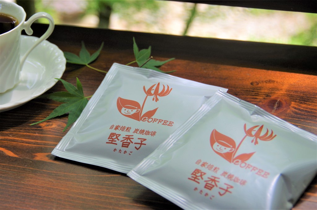 足助屋敷で作った炭を使い、自家焙煎したコーヒー。
